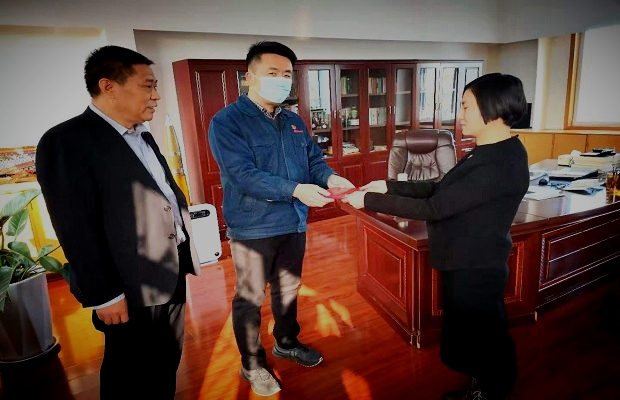 2020年11月12日上午10時許,中信重工機械股份有限公司,保衛(wèi)部領(lǐng)導一行,專程來到河南鑫邦人力公司,為招聘部程寧利同志頒發(fā)榮譽證書。