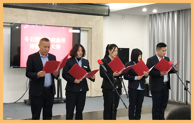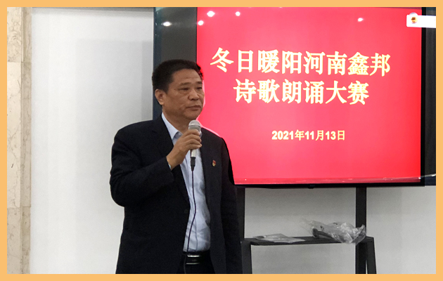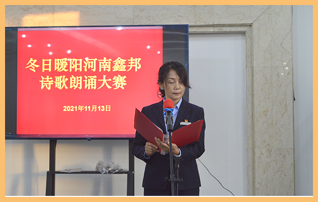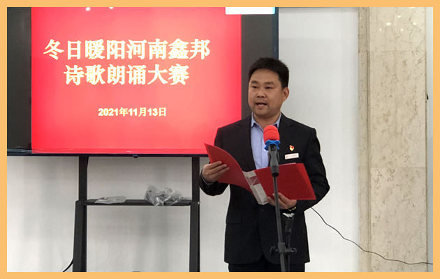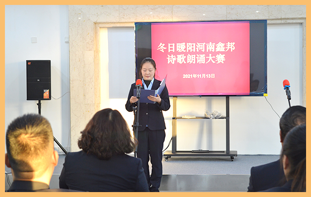 2021年11月13日,伴隨著冬日溫暖的陽(yáng)光,河南鑫邦人力資源服務(wù)有限公司在公司六樓會(huì)議室舉行了冬日暖陽(yáng)詩(shī)歌朗誦比賽活動(dòng)。活動(dòng)旨在進(jìn)一步增強(qiáng)團(tuán)隊(duì)凝聚力、弘揚(yáng)鑫邦企業(yè)文化、豐富員工業(yè)余生活。